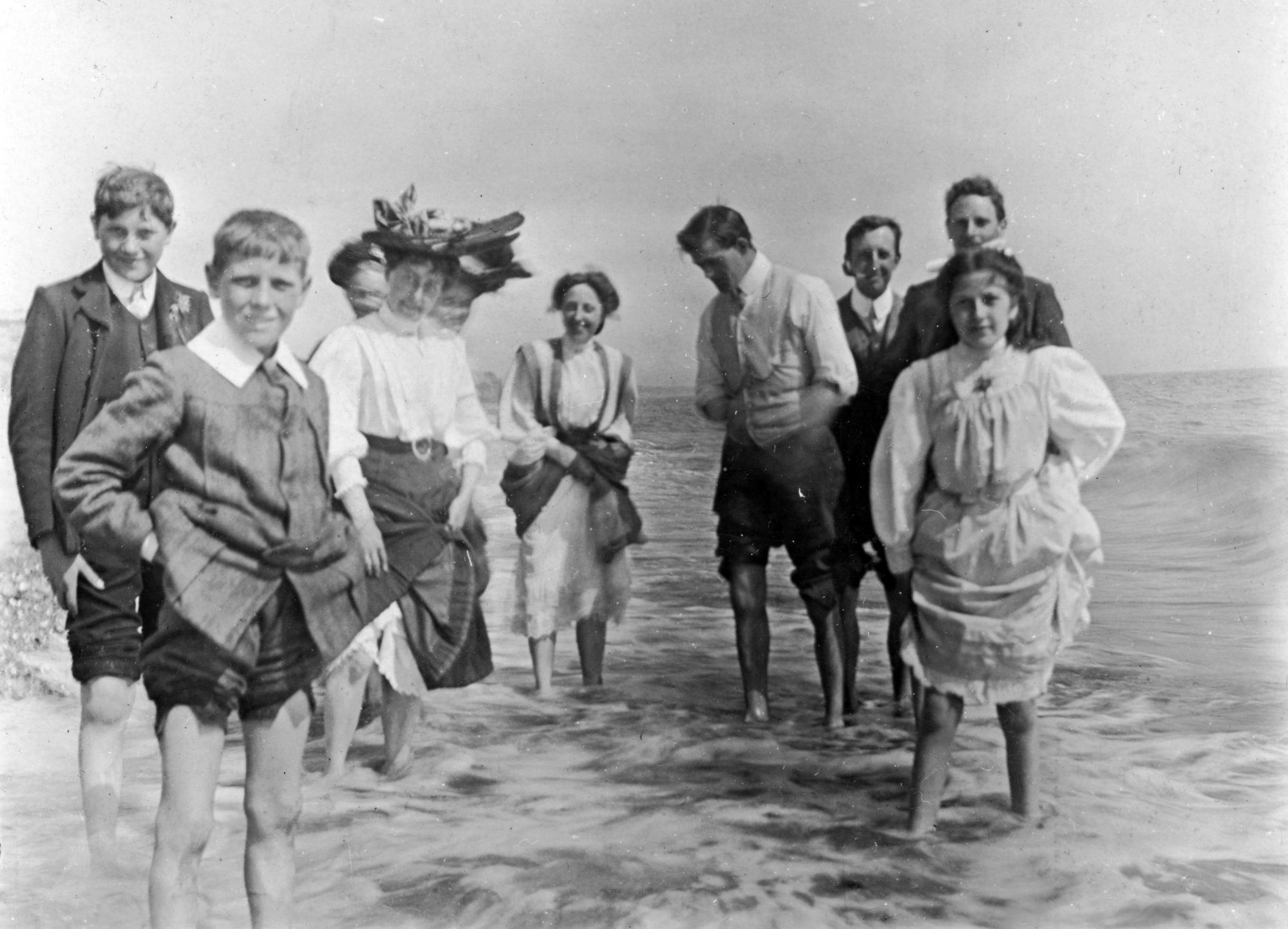 Among the many scenes that appear repeatedly in family albums are fully clothed people standing where the sea meets the shore: men with their trousers rolled up to the knee, women with their skirts hitched up, and children squinting, with or without their sunhats on. The waves rarely break much further up than their ankles, and the subjects, from toddler to dowager, are invariably looking directly into the camera lens.