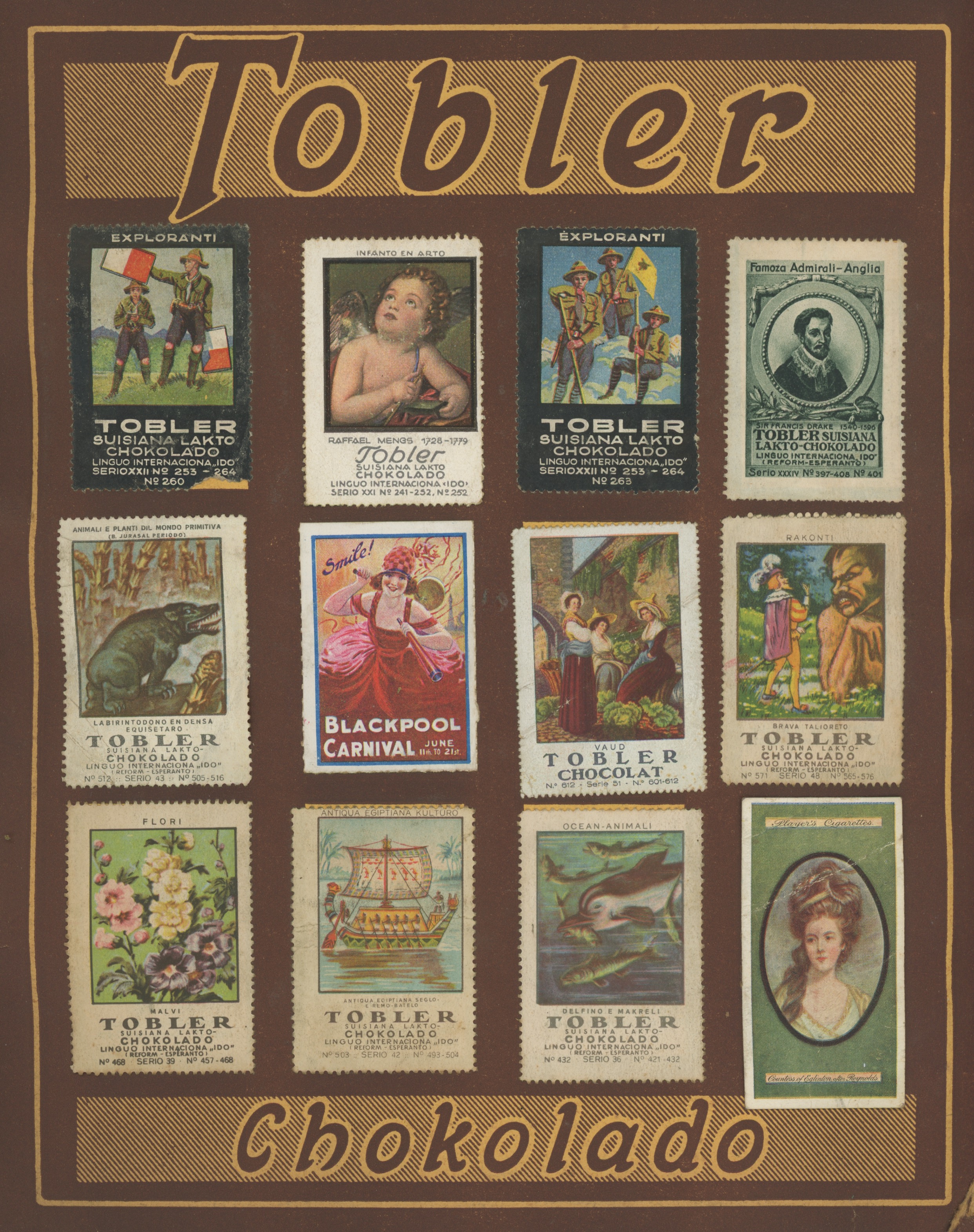 I opened the first page. The album’s original purpose was to feature themed decorative stamps published by the Swiss chocolate company Tobler, the confectioner famous for producing the Toblerone bar, in 1914. On this occasion, the album had also been used to show 270 photographs ranging in date from 1914 to 1928. It is the largest single volume collection of images in our archive.