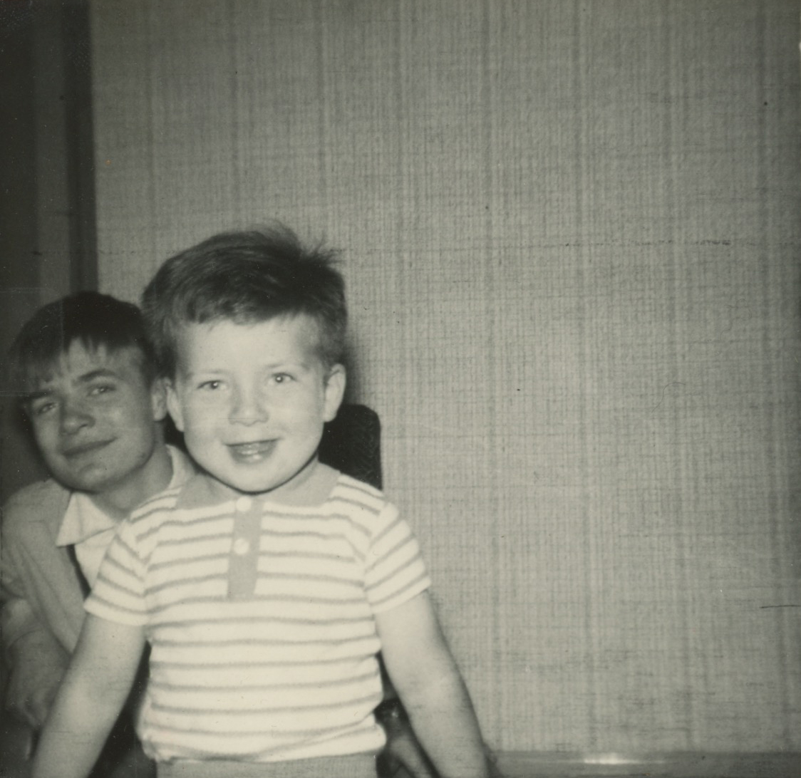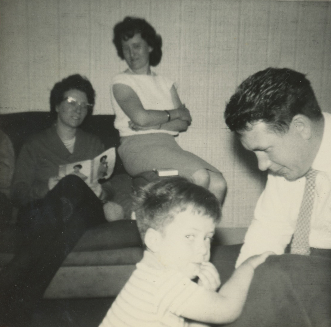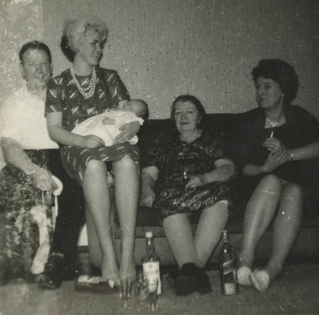 Some of the internal flash shots of the ‘Boozy party’ have a kitchen-sink, fly-on-the-wall feel to them. These photos seem to portray a family which is poor; no pictures on the wall, no table for the glasses and booze, everyone perched on a 1930s couch. But their back garden is manicured to perfection, replete with lily pond, gnomes and fake stalks. It is at this ‘Boozy party’ that the photographer can finally be identified in the shot entitled ‘Gary and I’. ‘Cousin Gary’ is a five-year-old boy; the chubby-cheeked lad peering around his right shoulder is our photographer, hungry for the camera.