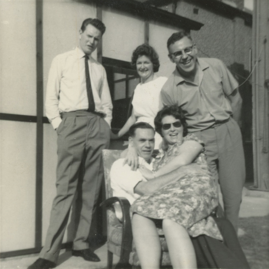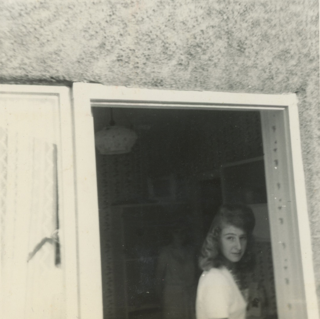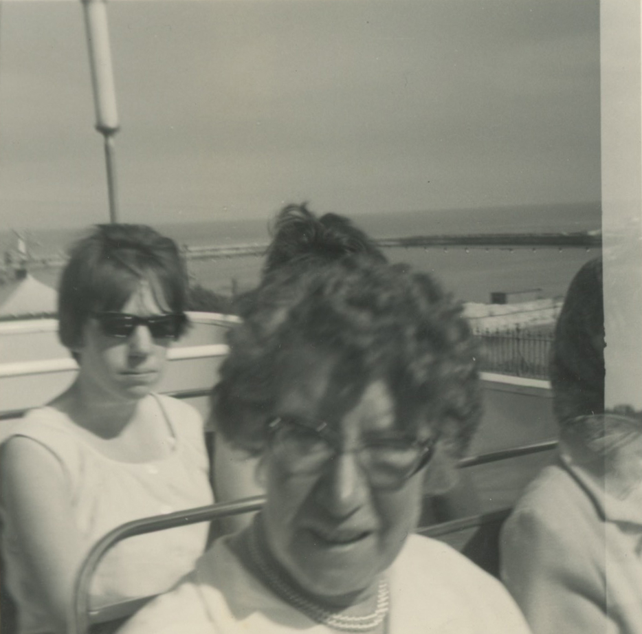 A number of the photos show someone who thinks about light, and culture. There is a photo shoot in the back garden where he uses his sister, Janis, as muse. One shot is composed so that Janis’s silhouette forms neatly on the white shed door. Another photo taken on the same day, entitled ‘Janis in Backdoor’, betrays the influence of ‘Continental’ cinema beloved by proto-Mods of this era – he is wearing two-tone Mod shoes and jeans in the Hawaiian/Mexican-themed Butlins’ souvenir photo, a shot in which ‘Ma and Pa’ can be seen smoking. There are several shots of ‘Dozy Dave’. Dave may have been the photographer’s brother, but more likely the family lodger. Dave is no muse – his attitude throughout is one of grudging forbearance. Or perhaps there was a little Mod/Rocker needle. There is one shot that could only have been taken by a 15-year-old boy, entitled ‘Mum and Nan coming out of the ladies’ and sadly out of focus.