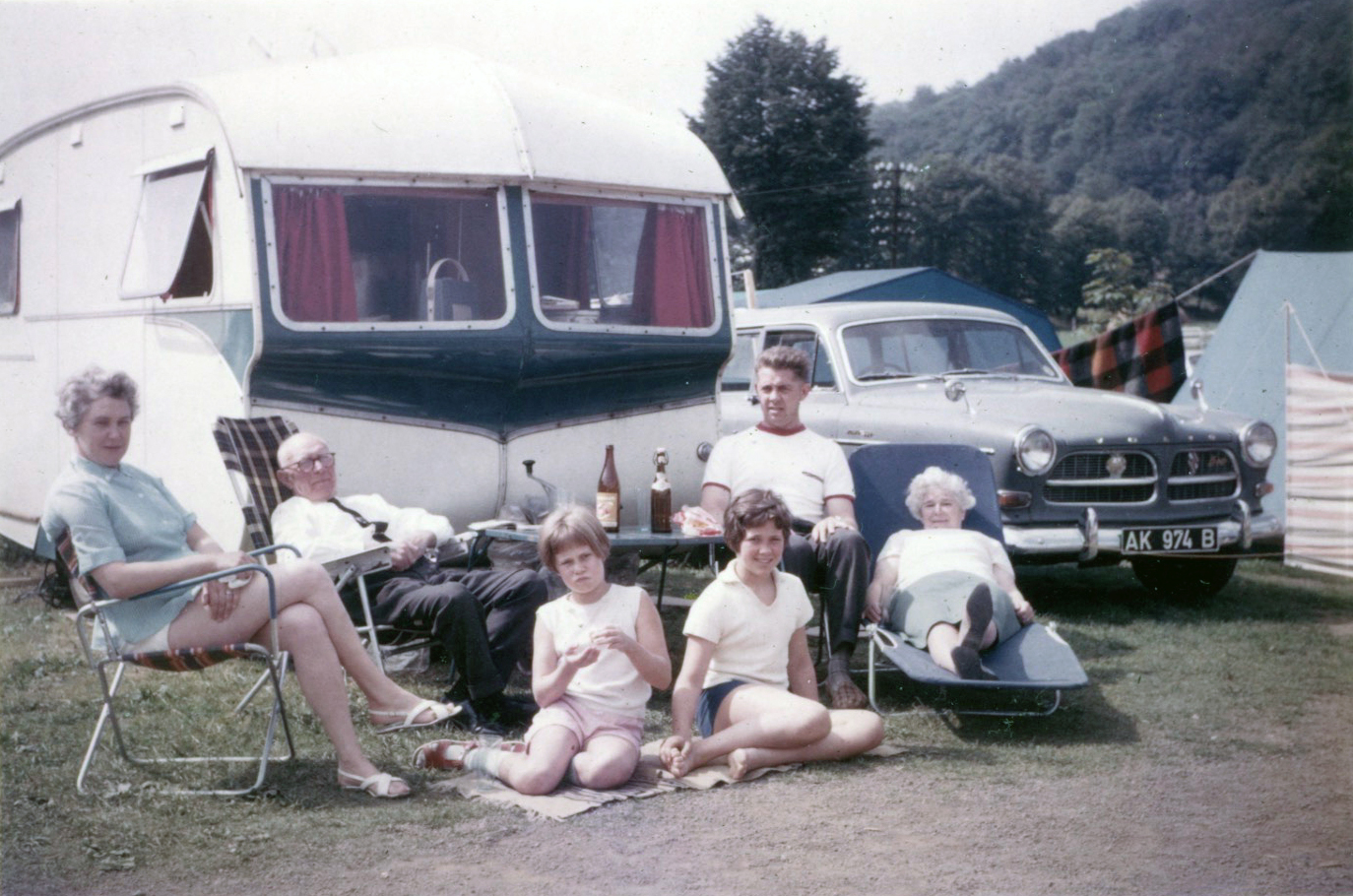 With a growing family, the freedom and practicality of a touring caravan dragged along by a huge Volvo Wagon now suited the family’s needs. There are two pages of tourist postcards – a dozen or so photographs of picturesque German towns.