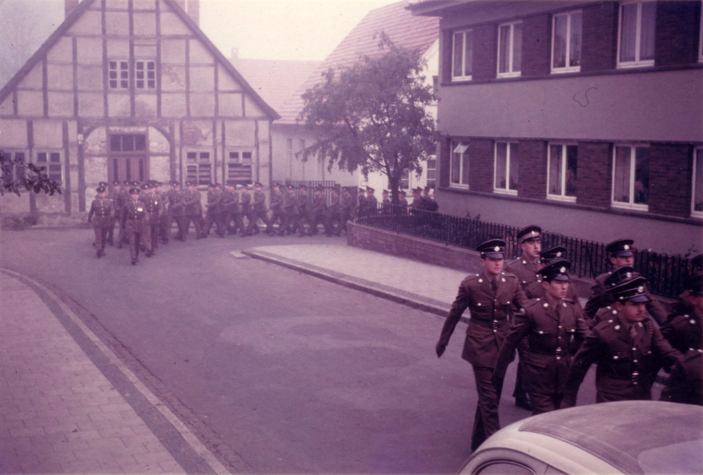 There are also 10 photos taken at an army training camp in Denmark, some showing soldiers peeling potatoes, a trope signifying punishment duty used in B-movie war films. There is one image featuring ‘”Baker” “The Accident Man”‘. A ceremony celebrating the Royal Army Service Corp becoming the Royal Corp of Transport is also shown. The album ends with the family taking a Christmas Day walk in the woodlands of Rhinedahlen in 1966.